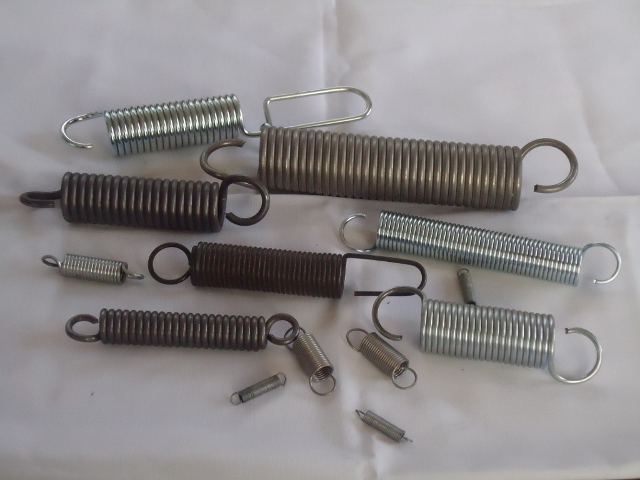 Estos resortes soportan exclusivamente fuerzas de tracción y se caracterizan por tener un gancho en cada uno de sus extremos, de diferentes estilos: inglés, alemán, catalán, murciano, giratorio, abierto, cerrado o de dobles espira. Estos ganchos permiten montar los resortes de tracción en todas las posiciones imaginables. Y soportar diferentes cargas.